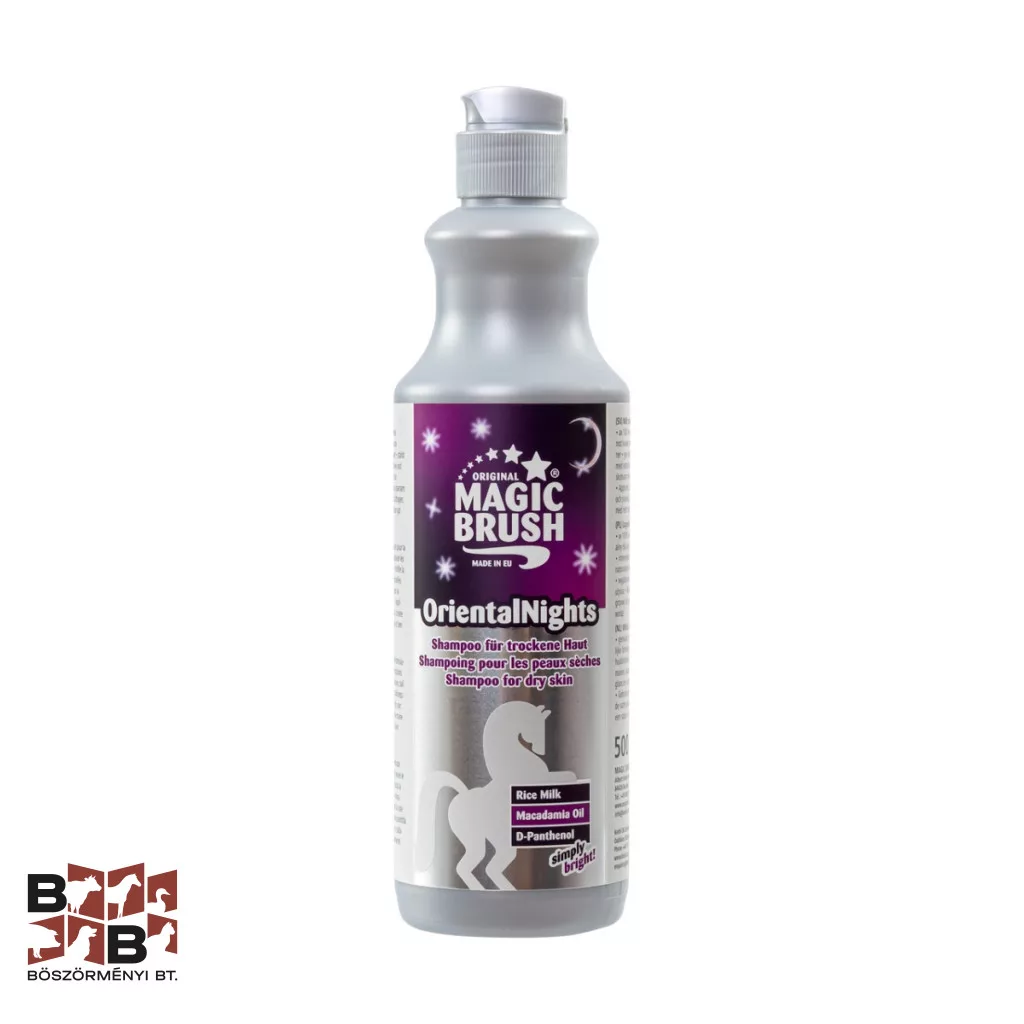 Az OrientalNights sampon rizstejet, makadámiaolajat és D-pantenolt tartalmaz, amelyek intenzíven hidratálják a bőrt és erősítik a szőrszálakat. A formula kifejezetten száraz vagy érzékeny bőrű lovak számára készült, segít megőrizni a bőr rugalmasságát és csökkenti a szárazság érzetét. A szőrzet, a sörény és a farok puhábbá, könnyebben fésülhetővé válik, és egységes, ápolt megjelenést kap.