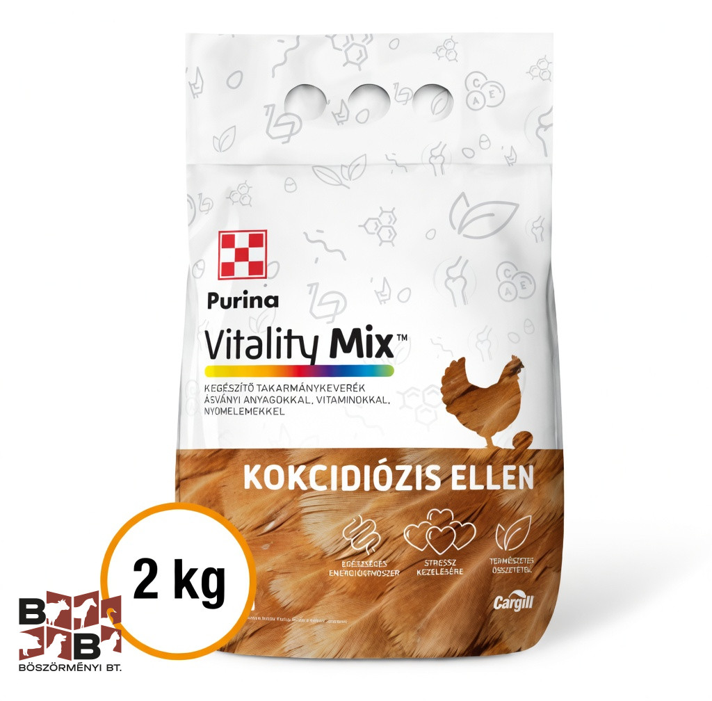 A Purina Vitality Mix – Kokcidiózis Ellen egy speciálisan összeállított kiegészítő takarmánykeverék, amely hatékony támogatást nyújt a baromfiállomány számára a kokcidiózis elleni küzdelemben. A termék célzottan segíti az egysejtűek és baktériumok okozta fertőzések utáni regenerációt, miközben hozzájárul az emésztőrendszer természetes egyensúlyának visszaállításához.